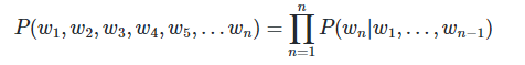 예를 들어, P("자연어 처리를 공부하며 커피도 먹고 빵도 먹고 과자도 먹고..")