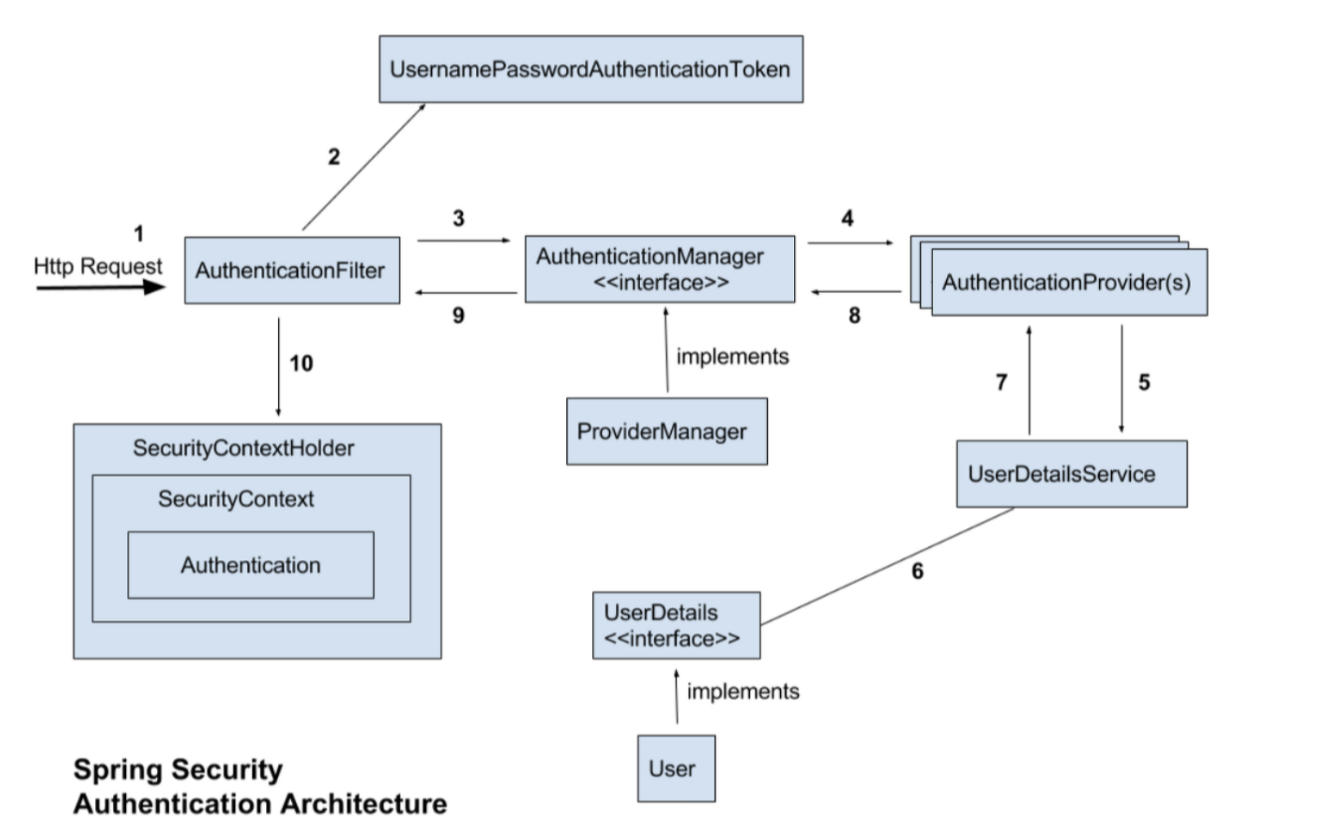 - AuthenticationProvider은 전달받은 UserDetails와 로그인을 요청한 사용자 정보와 비교한다.