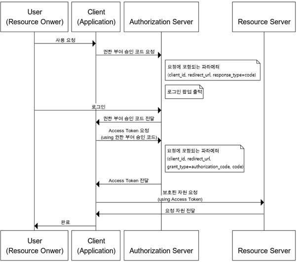 | Client | Resource Server의 자원을 이용하고자 하는 서비스 (ex.우리가 개발하려는 서비스) |