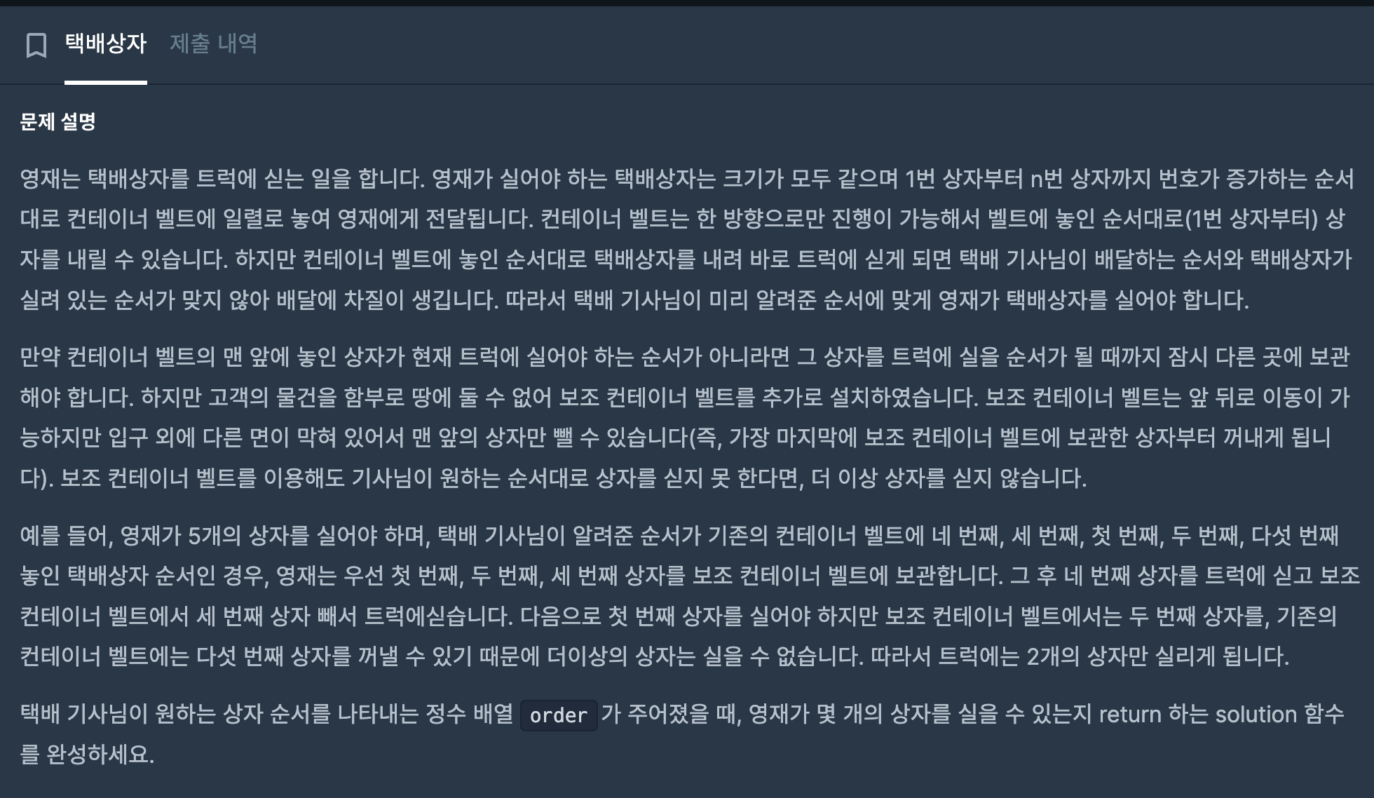 if i_que<len(que) and que[i_que]==order[i_order]: #큐의 첫번째 값과 order의 해당 인덱스의 값의 동일할때